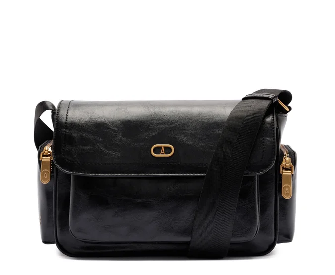Bolsa tiracolo média, com detalhe de bolsos laterais e alça de gorgurão, na cor preta. O modelo possui shape retangular e estruturado, com laterais arredondadas. De material similar ao couro, com acabamento texturizado e detalhe de costura ornamental nos contornos. Traz alça longa transversal com regulagem em fita de gorgurão confortável, no mesmo tom da bolsa. Traz bolso externo grande - aplicado na capa frontal - com fechamento único em tampo, por botão de ímã. Possui dois bolsinhos nas laterais, ambos com fecho em zíper metálico, exclusivo Anacapri - com acabamento em efeito tamboreado. Com forro vermelho na parte interna, possui etiqueta emborrachada e personalizada Anacapri, com design em ondas. Traz aplicação de pin metálico em cápsula Anacapri, centralizado na parte superior do tampo.