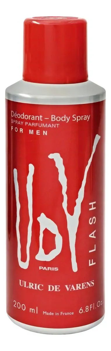 Desodorante Udv Flash Ulric de Varens 200ml - Masculino Udv Flash Ulric de Varens exibe uma fragrância masculina explosiva. Na nota de saída, o frescor da tangerina, do limão e da maçã explodem em contato com notas marinhas e cardamomo. As notas aromáticas do tomilho e da lavanda transpassam a fragrância como um FLASH e são aquecidas por um arranjo sensual de flor de laranjeira e canela. Madeiras vibrantes associadas com o sândalo e o âmbar conferem uma virilidade moderna.