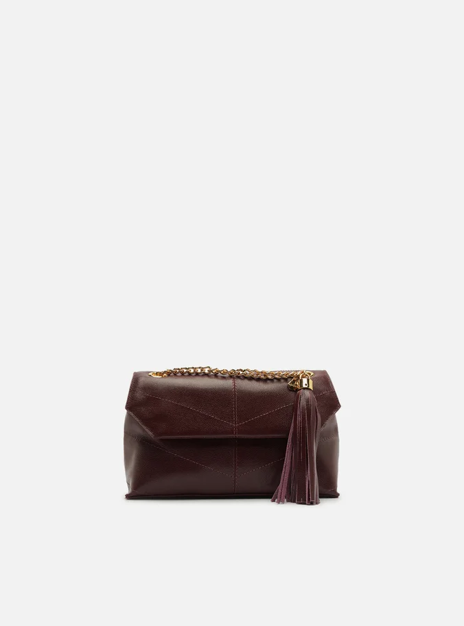 Descrição:Bolsa tiracolo pequena de couro marrom. O acessório tem formato retangular e costuras pesponto nas capas e emendas. Traz alça lateral em corrente metálica e tira de couro, que passa pela parte superior por ilhoses vazados. Com fecho em tampo frontal e imã. Detalhe em bag charm de barbicacho, preso à alça da bolsa.