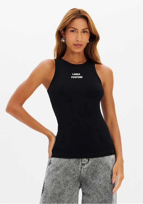 A regata em malha canelada exibe modelagem justa que acompanha o corpo com conforto e caimento impecável. O decote nadador valoriza a região dos ombros, enquanto o comprimento médio traz versatilidade. O bordado frontal completa o visual. Use com jeans lança perfume.