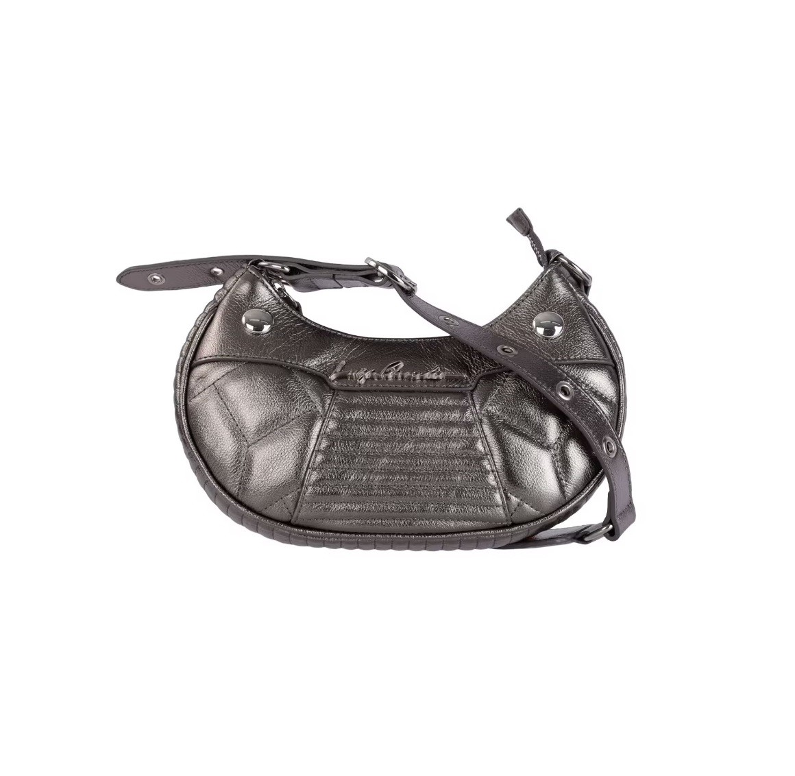 O estilo dessa bolsa Luiza Barcelos vem para esta temporada em tamanho pequeno, shape mais fino, glamuroso e fascinante: O modelo baguete com acabamentos angulares cumpre bem estas funções, focando em materiais macios e monocromia. A bolsa pequena é produzida em couro no tom metalizado chumbo com superfície com recortes em matelassê, possui alça tiracolo ajustável com detalhes de ilhós dourados, um compartimento interno, fechamento por zíper e aplicação frontal de tag da marca metalizada.