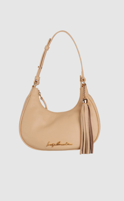 As bolsas de shape meia lua Luiza Barcelos ficam mais modernas e elevadas ao mais alto grau de refinamento através dos tons terrosos mais serenos. O modelo pequeno é produzido em couro liso no tom nata, possui alça de mão ajustável, marca em posição frontal, barbicacho lateral e é dividida em um compartimento principal com fecho em zíper.