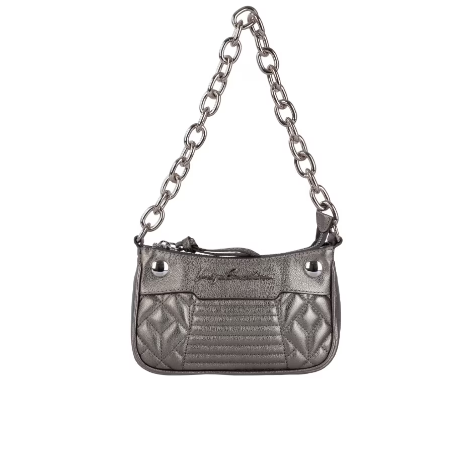 Essa bolsa Luiza Barcelos é sinônimo de sofisticação ganha novas informações de moda com o toque dos padrões de matelassê exclusivo Luiza Barcelos, arrematado pela alça de ombro em correntes douradas. O modelo de shape retangular é produzido em couro no tom metalizado cinza titânio, possui um compatimento interno forrado, alça tiracolo removível e ajustável, logo da marca aplicada no painel frontal e detalhe de dois rebites esféricos