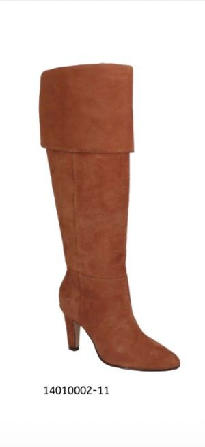 Essa bota traz um salto inédito com design inovador: reto na parte interna e com uma curvatura suave no exterior. Ela tem o bico amendoado, é confeccionada em camurça super macia no tom CARAMELO, que oferece uma textura maleável moldando-se perfeitamente ao corpo, permitindo que ela seja usada como over the knee ou com o cano dobrado abaixo do joelho.