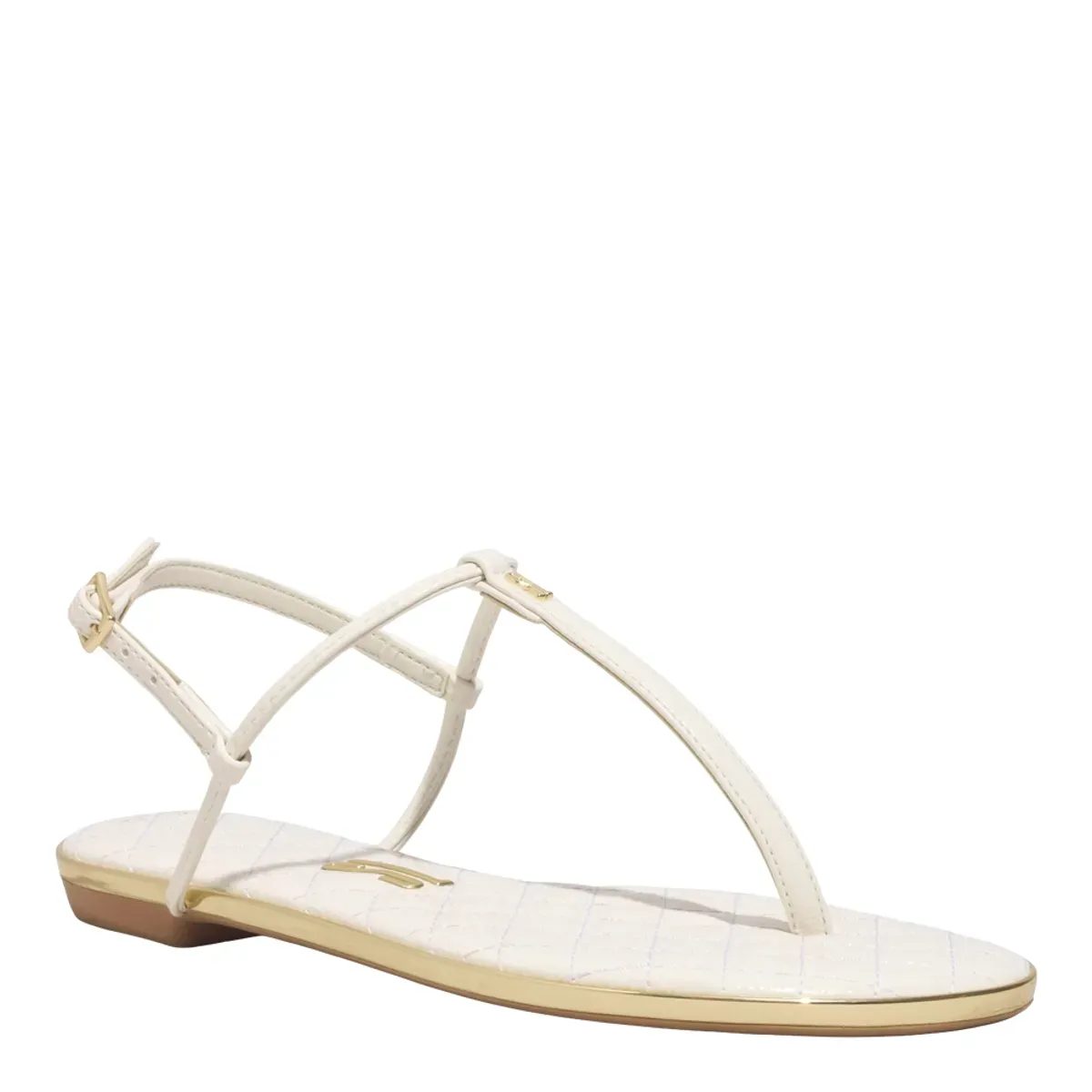 Rasteira confeccionada em material verniz, com tiras finas que formam o design estilo Salomé. Possui fechamento lateral por fivela ajustável, garantindo segurança e praticidade no calce. O modelo apresenta palmilha confortável e solado rasteiro com acabamento liso, ideal para compor produções leves e elegantes.