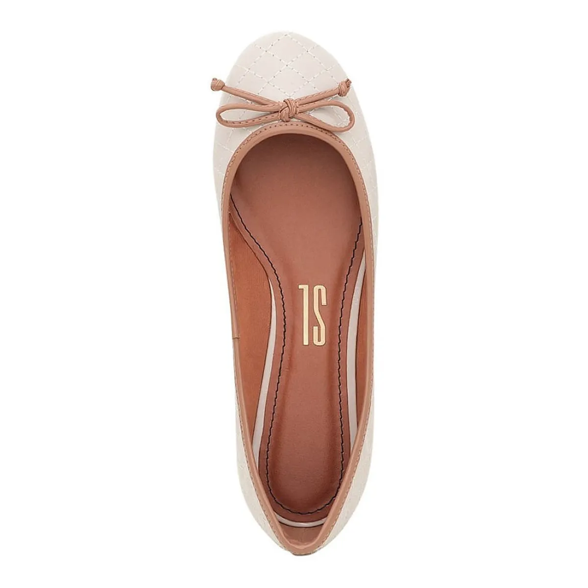 Sapatilha feminina confeccionada em verniz com acabamento em costura matelassê, modelo de bico redondo e salto flat, possui laço sobre o cabedal, essa sapatilha combina conforto e estilo, perfeita para compor looks casuais com elegância e versatilidade.