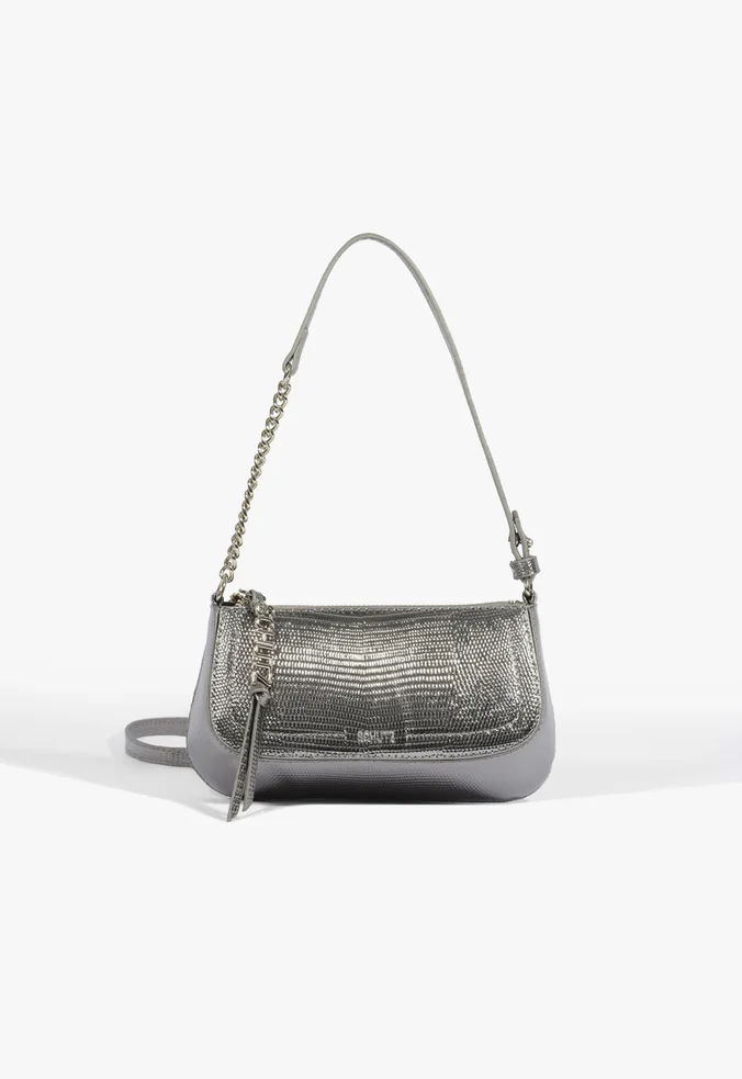 Com um design elegante e moderno, a bolsa tiracolo Tina é cheia de detalhes interessantes. Da aplicação metalizada que arremata o fechamento de zíper à corrente na alça (fixa, com regulagem para usar no ombro ou como tiracolo), essa bolsa prata tem um visual glam e trendy que atualiza o look na hora! Comprimento da alça tiracolo: 55 cm