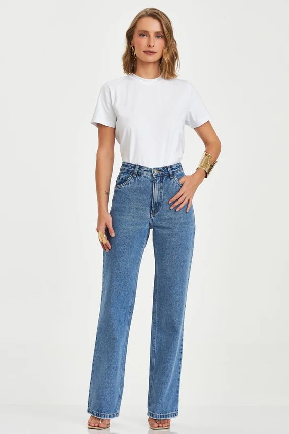 * Cós Alto * Bolso frontal e traseiro * Fechamento por zíper e botão
